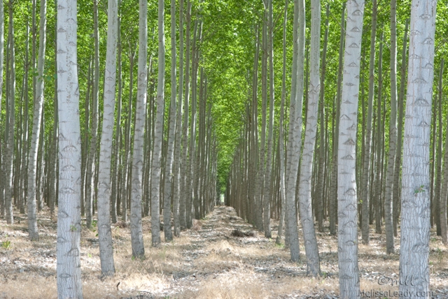 A summertime view of the poplar farm in Boardman, Oregon. Another photo buried on my SD card, this time from a trip to Montana last July. At the time I was more interested in an abstract panning photo, but I'm glad I took this more traditional view. Today the tall trunks remind me of columns in an outdoor cathedral, where man and nature intersect magically at this sustainable tree farm.